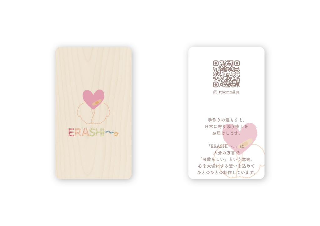 ハンドメイド作品ブランド「ERASHI〜。」様のロゴおよびショップカードを制作。